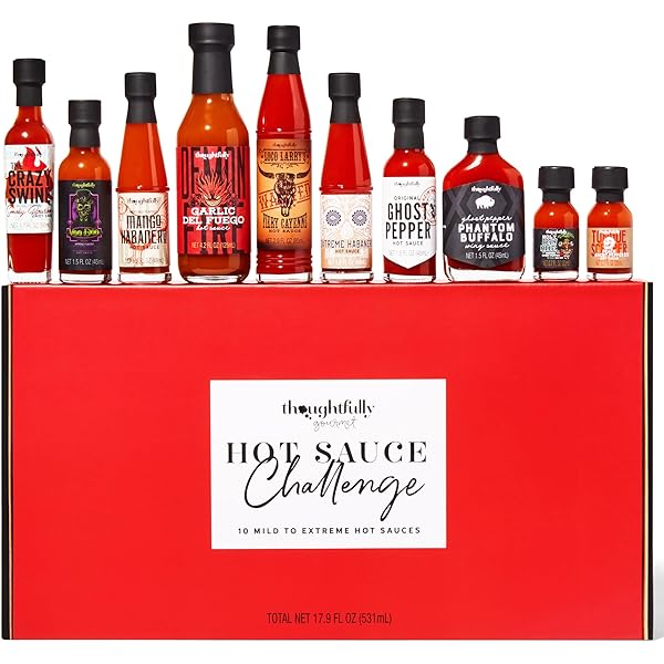 Amazon Com Thoughtfully Gourmet Scoville Laboratory Hot Sauce Challenge Set Includes Display Rack And Hot Sauces With Scoville Scale Flavors Ranging From 430 11 300 Set Of 10 Grocery Gourmet Food